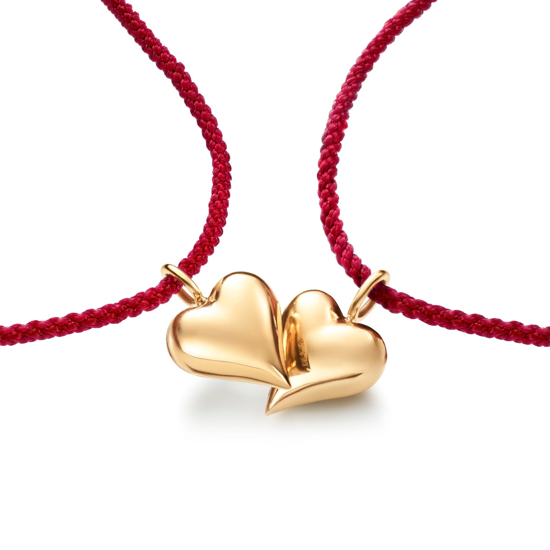 Connected Heart armbånd med rød nylonsnor og guld hjerte.