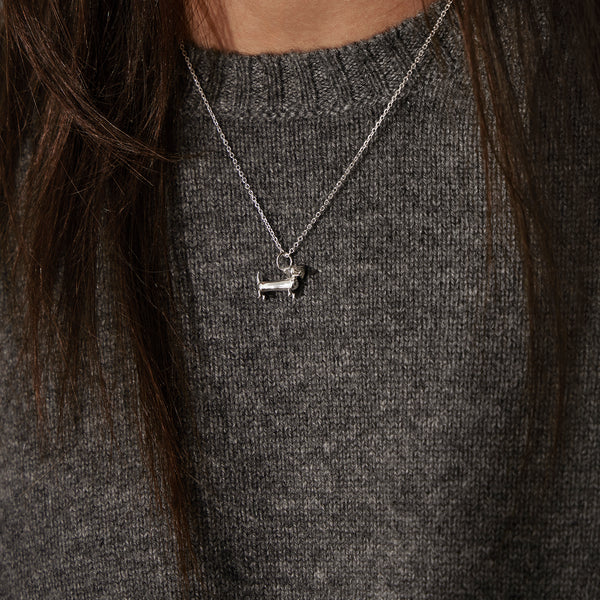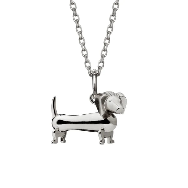 Kay Bojesen gravhund vedhæng med kæde. Hvert vedhæng er skabt med omhu og under strenge kvalitetskrav for at sikre både holdbarhed og en perfekt udførelse. Designet er tro mod Kay Bojesens ikoniske gravhund, hvilket gør smykket til en tidløs klassiker i eksklusive materialer.