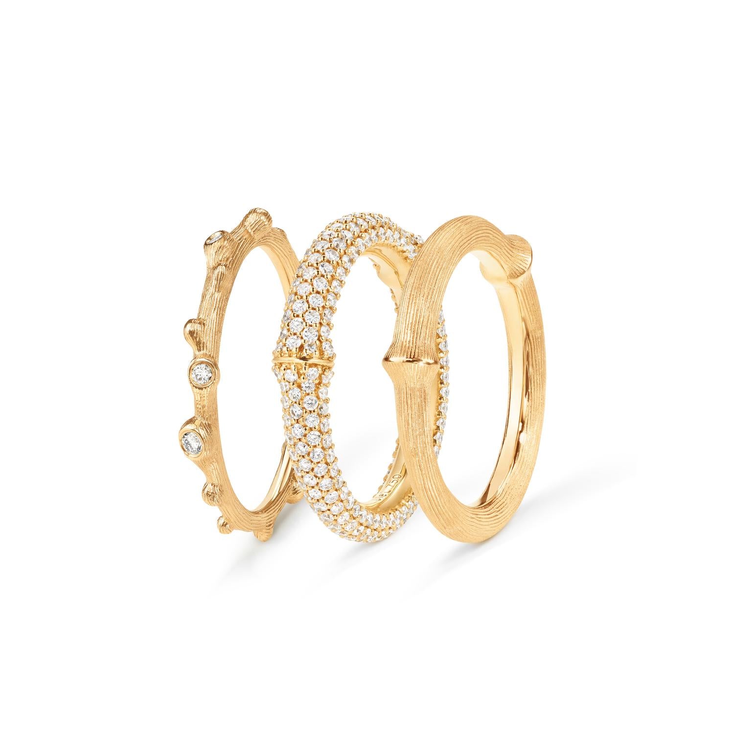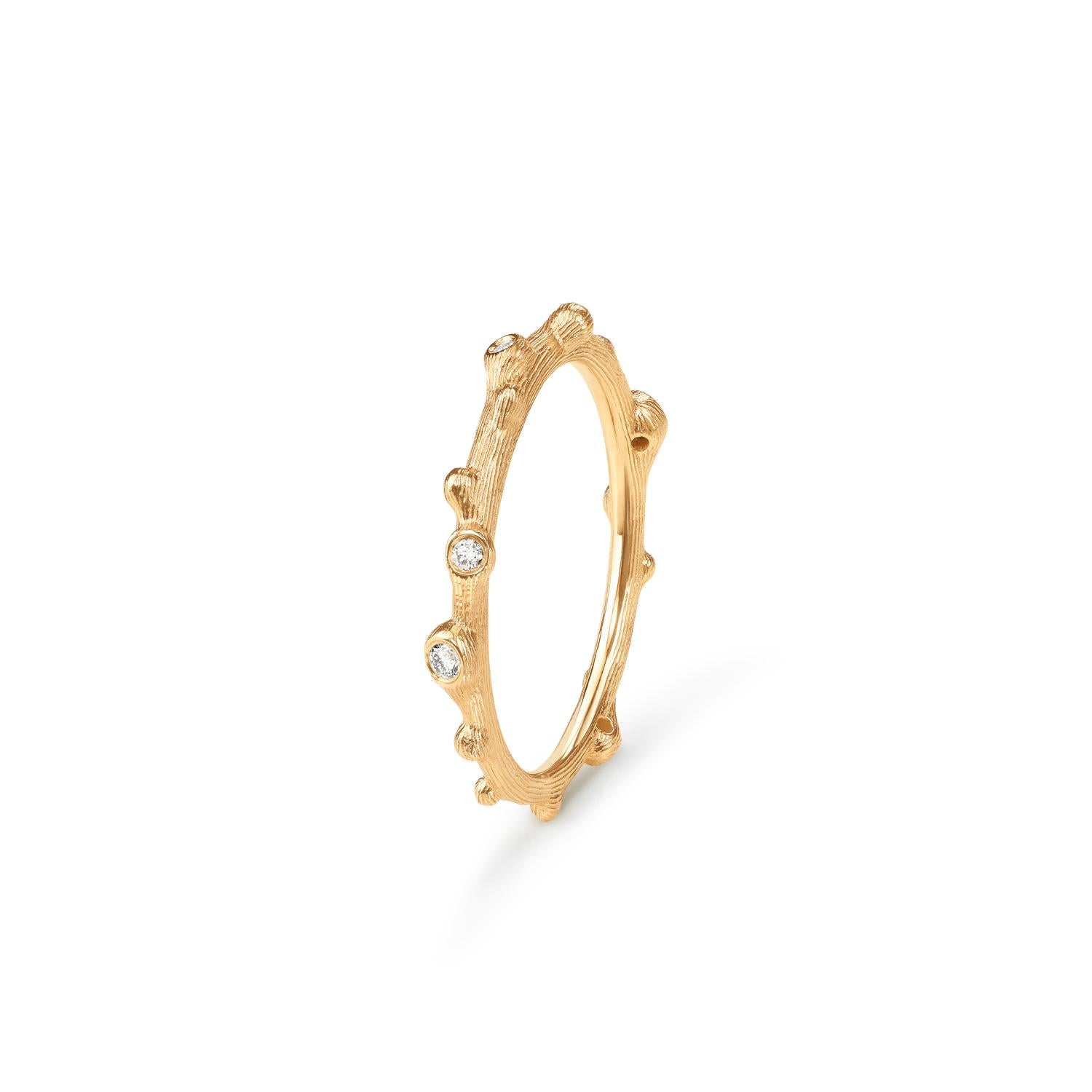 Nature ring i 18 kt. rødguld. På hendes utallige skovture finder Charlotte Lynggaard inspiration i teksturer og konturer af elementer, der kan plukkes fra levende, voksende planter og træer. Nature kollektionens satinerede overflade afspejler delikate grene og kvistes tekstur.