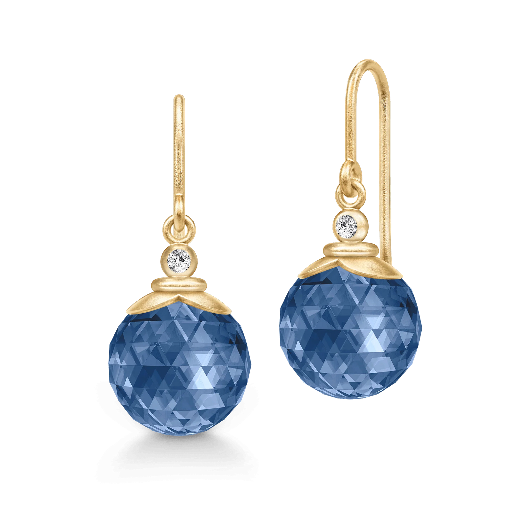 Berry øreringe i sterling sølv, belagt med 22 kt. guld. Øreringene er med Sapphire Blue krystal og cubiske zirconia.