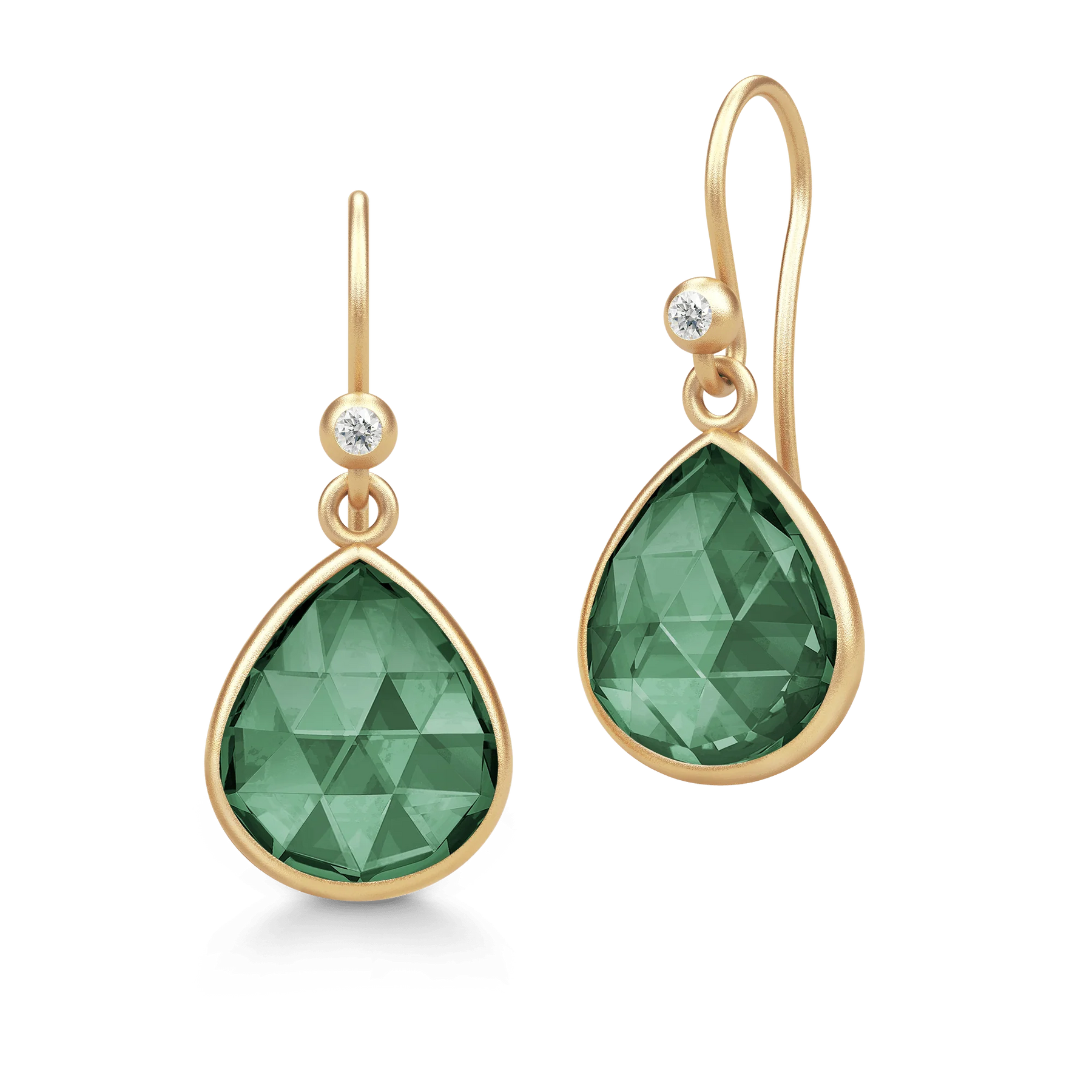 Lea øreringe med Turmalin sten. Disse øreringe kommer med smukke farvede pear briolette rose cut krystaller. Derudover er øreringen dekoreret med zirkonia. Oplev også det matchede Lea vedhæng, hvis du ønsker et sammenhængende udtryk.